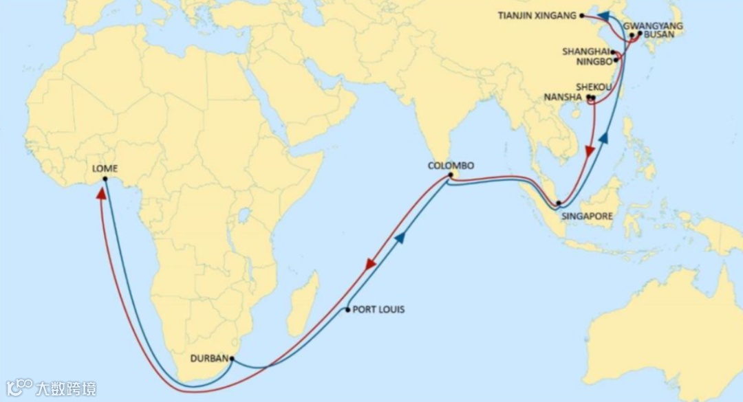 核心港口:上海、新加坡、德班、开普敦、蒙巴萨、拉各斯