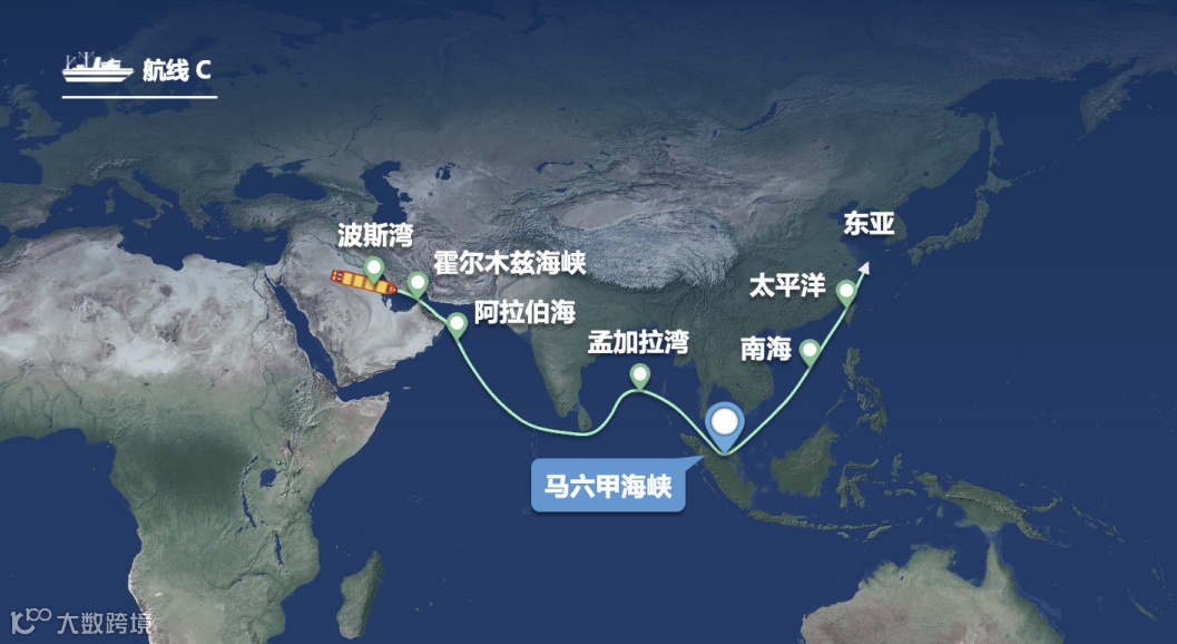 航线特点:全球能源命脉,约80%东亚石油进口依赖此航线;以原油、液化天然气为主,主力船型为超大型油轮(VLCC、ULCC)。
