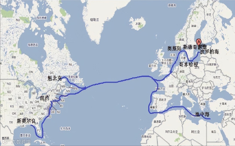 核心港口:纽约、诺福克、南安普顿、鹿特丹、汉堡、勒阿弗尔