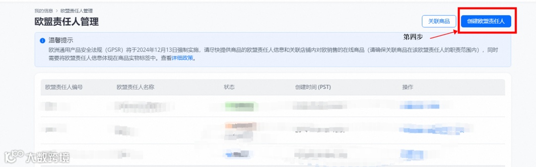 全托管商家:商家后台-店铺信息-基础信息管理-合规信息-欧盟责任人管理