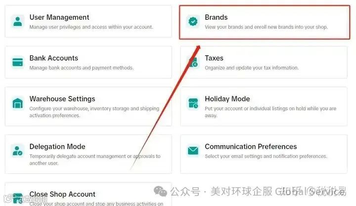 进入账户设置页面,选择“Brands”→“Add Brand Authorization”。