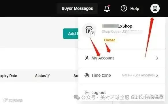 登录TikTok Shop后台,点击右上角头像后依次选择“My Account”→“Account Settings”。