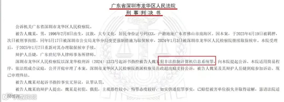 深圳市龙华区人民法院依法对该案进行了公开审理。法院审理认为,被告人魏某在离职后,违反国家相关规定,利用未被收回的权限非法侵入前任职公司的计算机信息系统,并对系统内的核心运营数据进行恶意篡改与控制,造成了特别严重的经济损失,其行为已构成非法控制计算机信息系统罪,事实清楚,证据确凿。依据《中华人民共和国刑法》第二百八十五条第二款之规定,结合被告人魏某案发后积极赔偿被害人经济损失并获得谅解、当庭自愿认罪认罚等情节,法院最终作出一审判决:判处魏某有期徒刑三年,缓刑四年,并处罚金人民币二万元。这一判决既彰显了法律的威严,也为类似潜在违法行为敲响了警钟。