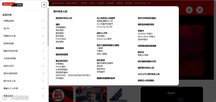 MediaMarkt,又名“万得城电器”,是欧洲领先的消费电子产品零售商,隶属于Media-Saturn-Holding GmbH旗下管理,该集团由全球知名零售巨头麦德龙控股。MediaMarkt自1979年在德国慕尼黑创立首家门店以来,已迅速扩展至德国、西班牙、葡萄牙、比利时、意大利和法国等多个国家,拥有超过1000家连锁店。同时,它也积极构建并发展其在线购物平台,为消费者提供便捷的网络购物服务。
