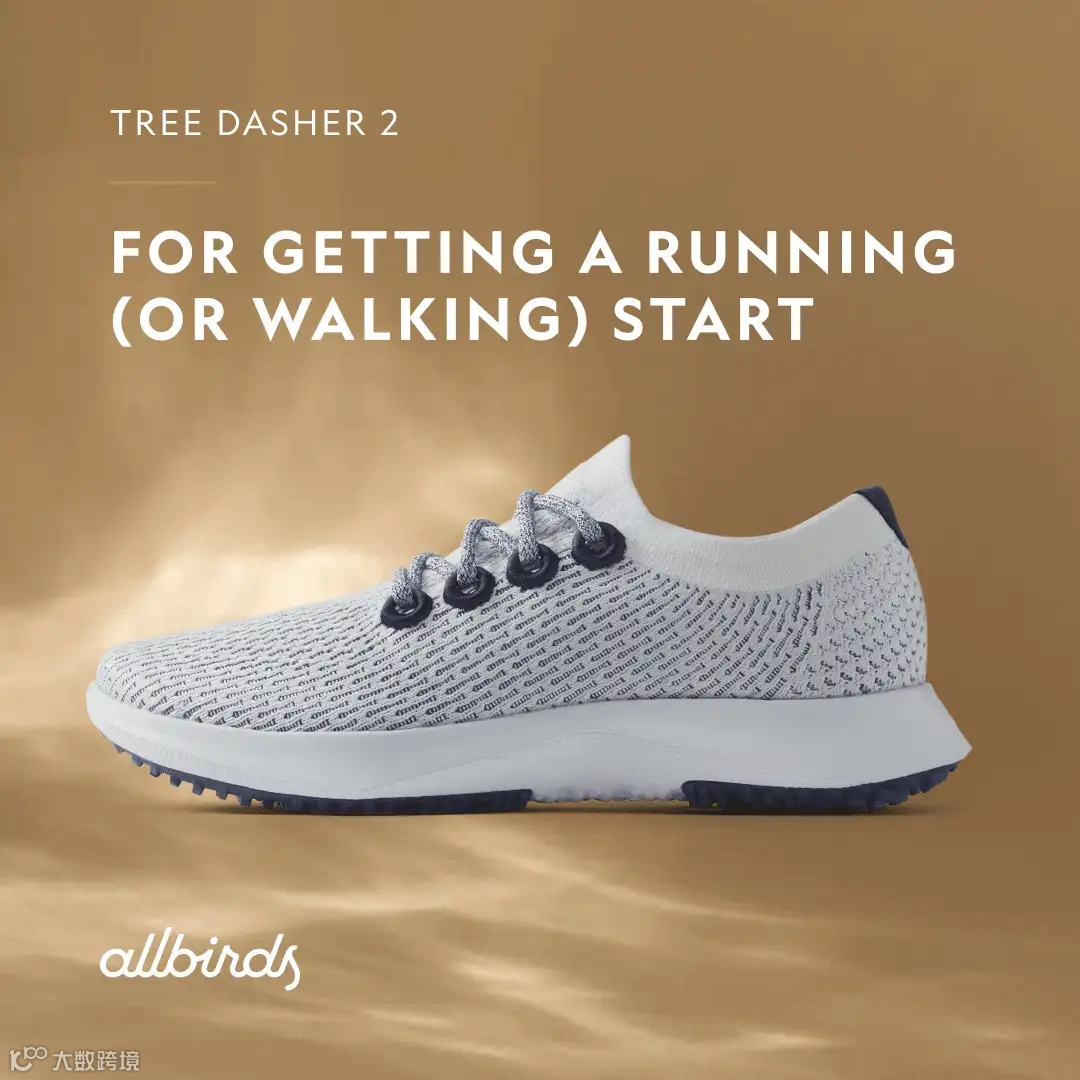最新投放的广告推广的是Tree Dasher 2系列的女士跑鞋,定价$135;与其它品牌时时不忘强调环保可标签相比,Allbirds低调得多,从图片素材到文案突显的都是鞋子的透气、舒适,适宜运动,从宣传海报中看不出任何与环保相关的元素。