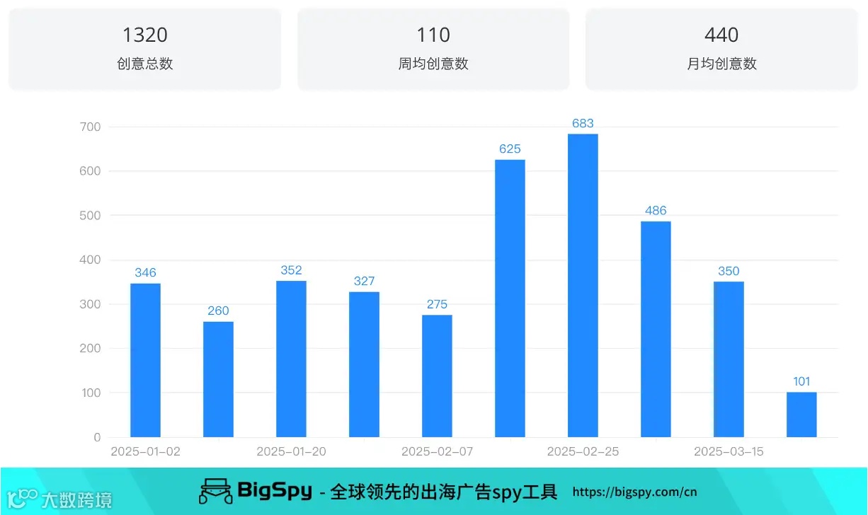 其官方Facebook账号@GroveCollab过去3个月月均创意数达210+,仅在美国市场投放;整个3月的投放量有明显的增长,推测是在为春季清洁需求高涨预热。投放的素材中,图片类型和视频类型占比基本持平。