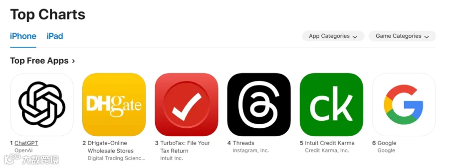 据App Store免费应用排行榜最新数据,中国跨境电商平台DHgate(敦煌网)在短短几天内迅速跃升至美区下载量第二,仅次于OpenAI旗下的ChatGPT,在购物类软件下载量中排行第一。