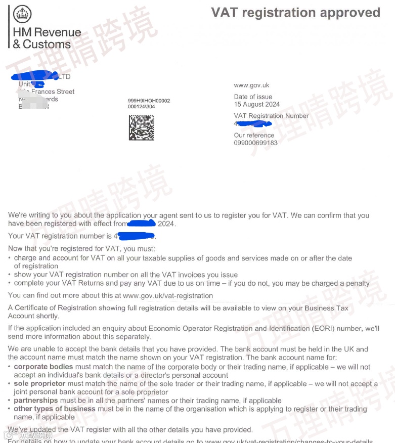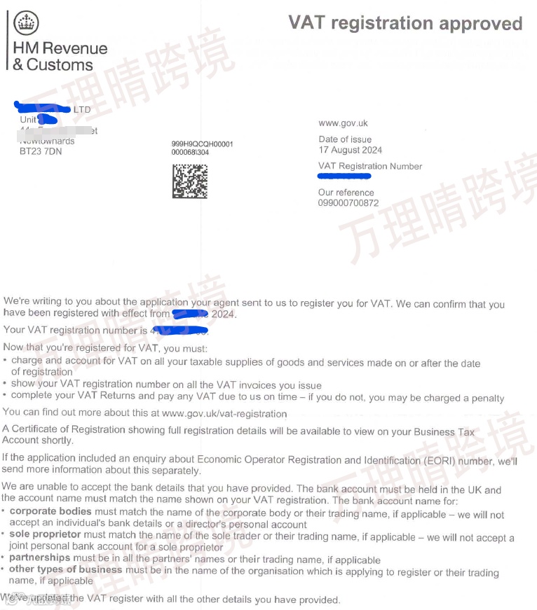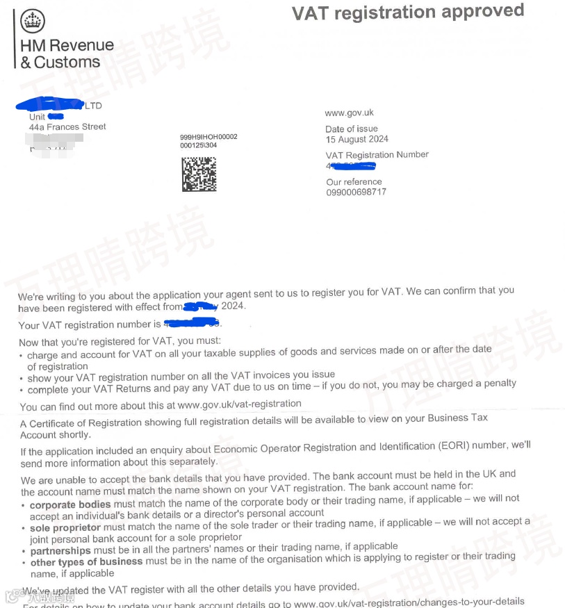 PS:如果在申请英国VAT税号的过程中碰上税局抽查,注册用时会久一点,大概三个月左右,如果没有被税局抽查到,那么2个月就能够收到英国VAT税号!