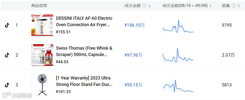 根据kalodata数据,一款DESSINI的空气炸锅登顶马来西亚家电热销榜第一名。在近一个月内卖出近万单,成交金额高达上百万。