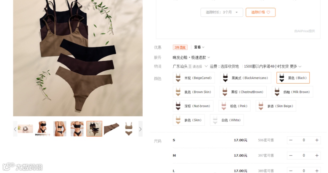 在女士内衣套装类目中排名(1)——服装和配饰类目中排名(887)