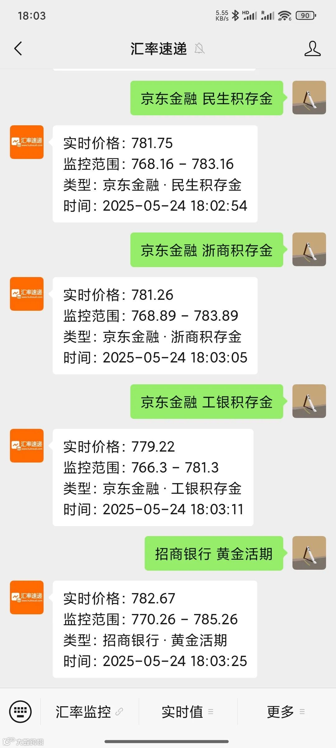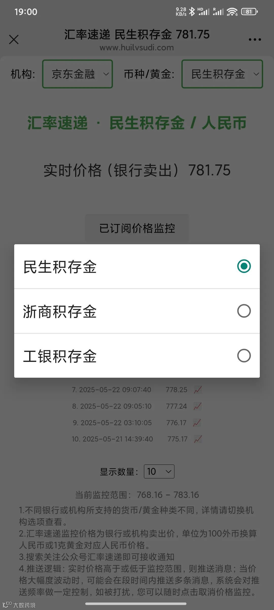 汇率速递已上线部分银行或机构的黄金产品价格监控预警功能,覆盖以下主流平台: