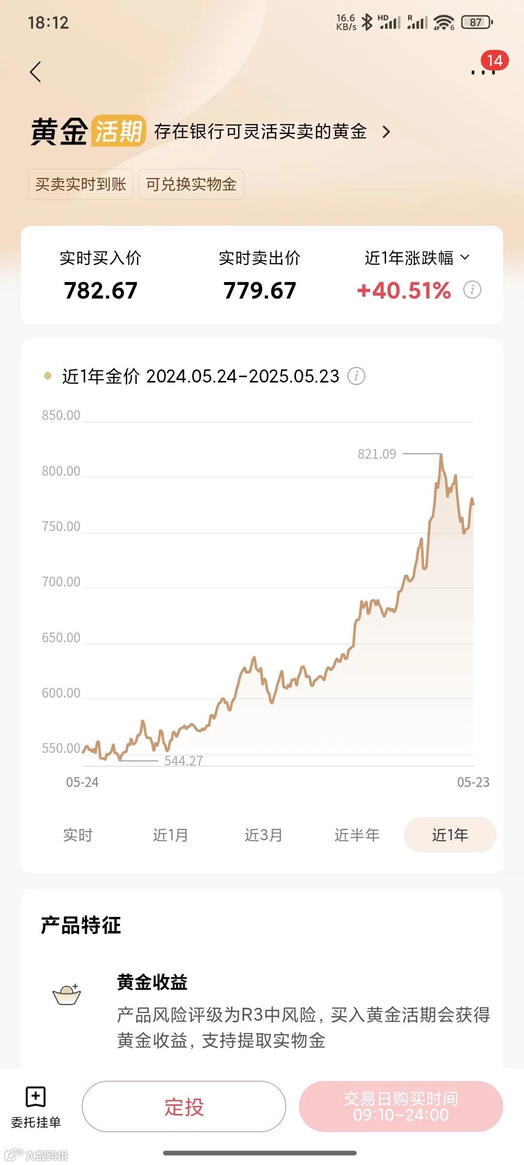 招商银行:黄金活期