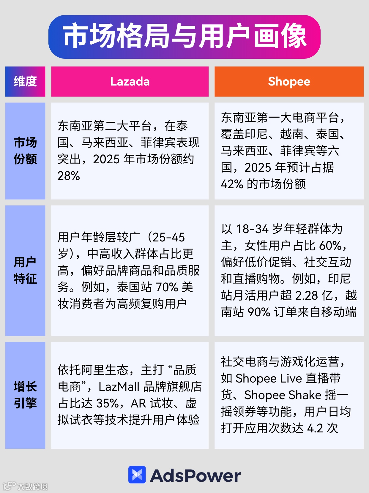 别慌,这就从市场格局与用户画像、平台政策与费用结构、物流与履约能力、用户行为与品类趋势、竞争环境与卖家生态、风险与挑战六大方面对比整理出Lazada 和 Shopee各自的优势,提供决策建议和风险对冲策略。附上运营必备工具清单,助力卖家开启无忧管理之路!
