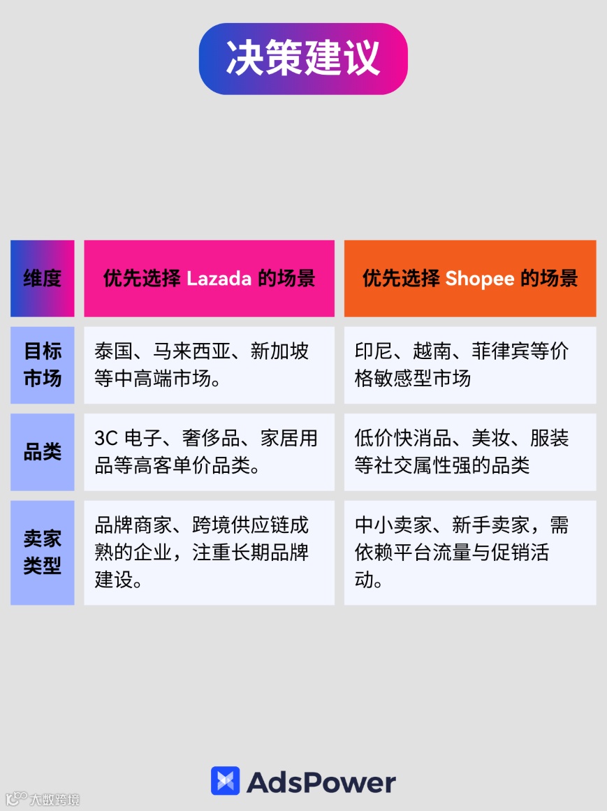 1.多平台布局:在 Shopee 主攻低价市场,Lazada 拓展中高端,分散政策与市场风险。