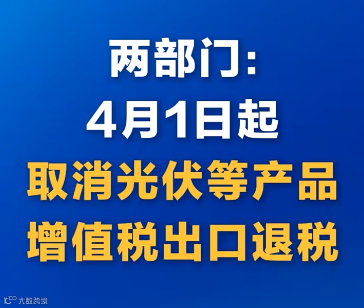 1月8日晚间,财政部、国家税务总局联合发布通知:自2026年4月1日起,取消光伏等产品增值税出口退税;同时,电池产品出口退税率将阶段性下调——2026年4月1日至12月31日由9%下调至6%,2027年1月1日起全面取消退税。
