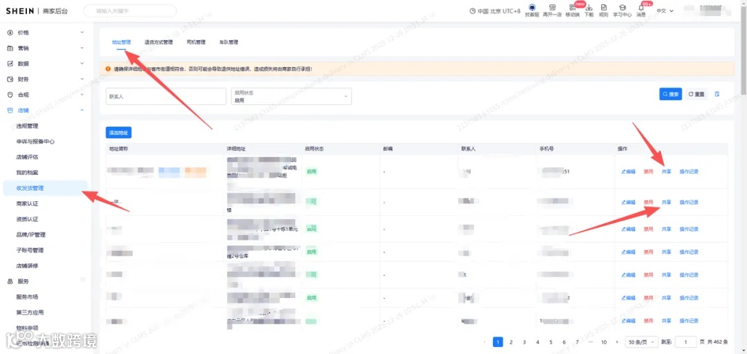 被申请的店铺【同意】后可进行共享发货地址。
