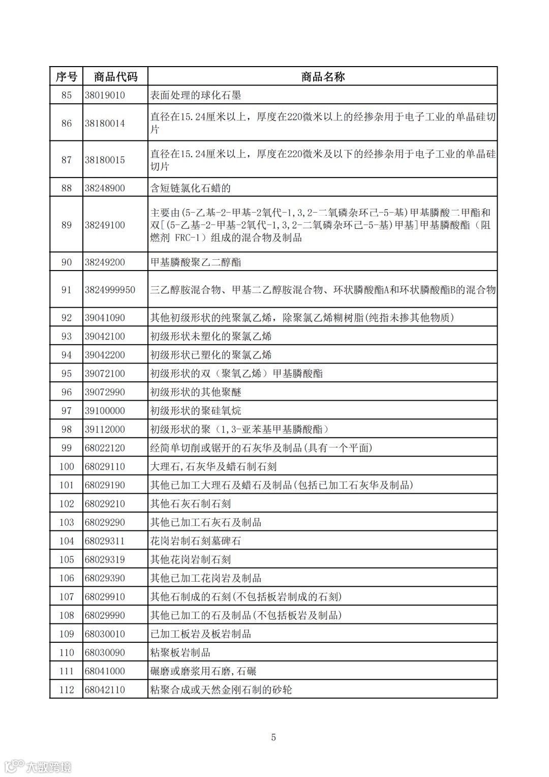此外,在公告中还列出了涉及产品的具体清单,其中光伏等产品包括249项,电池产品清单包括22项。