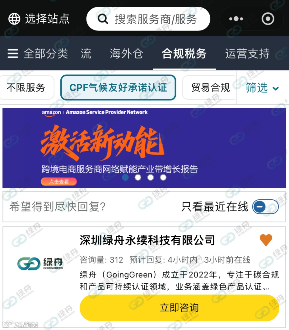 - 服务商体系完善:2025年6月,亚马逊SPN服务商网络上线CPF认证板块,绿舟入选首批官方认证服务商,标志平台正加速普及绿标认证。