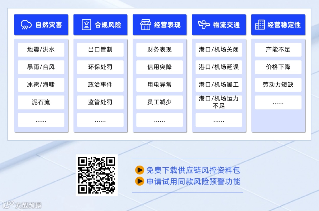 全球风险汇总:受地缘政治、关税政策、自然灾害及极端天气等因素影响,全球供应链中断风险持续加剧。