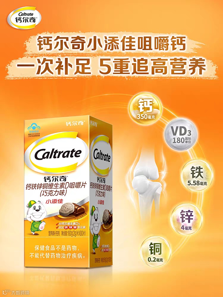 02 钙尔奇(Caltrate)小添佳咀嚼片:学龄儿童“多维补钙优选”