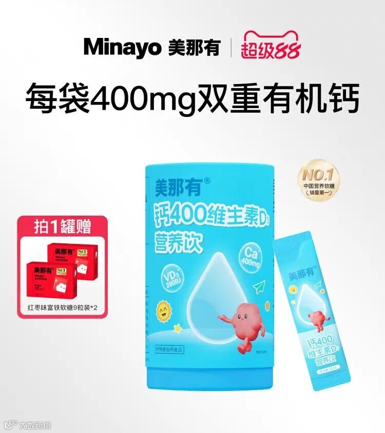 核心亮点:无机钙+有机钙结合,兼顾高钙量与温和性,1岁以上儿童服用不刺激肠胃;维生素D3促吸收,乳粉味易接受;累计销售超5亿盒,维生素AD品类TOP1,儿科医生广泛推荐。