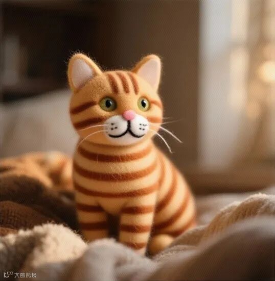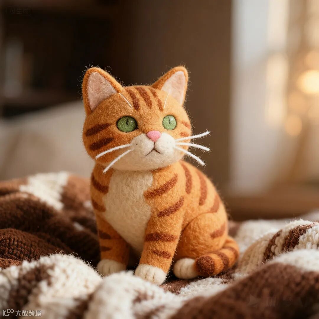 将一只猫的图片迁移到羊毛毡艺术风格,保持原图元素不变。