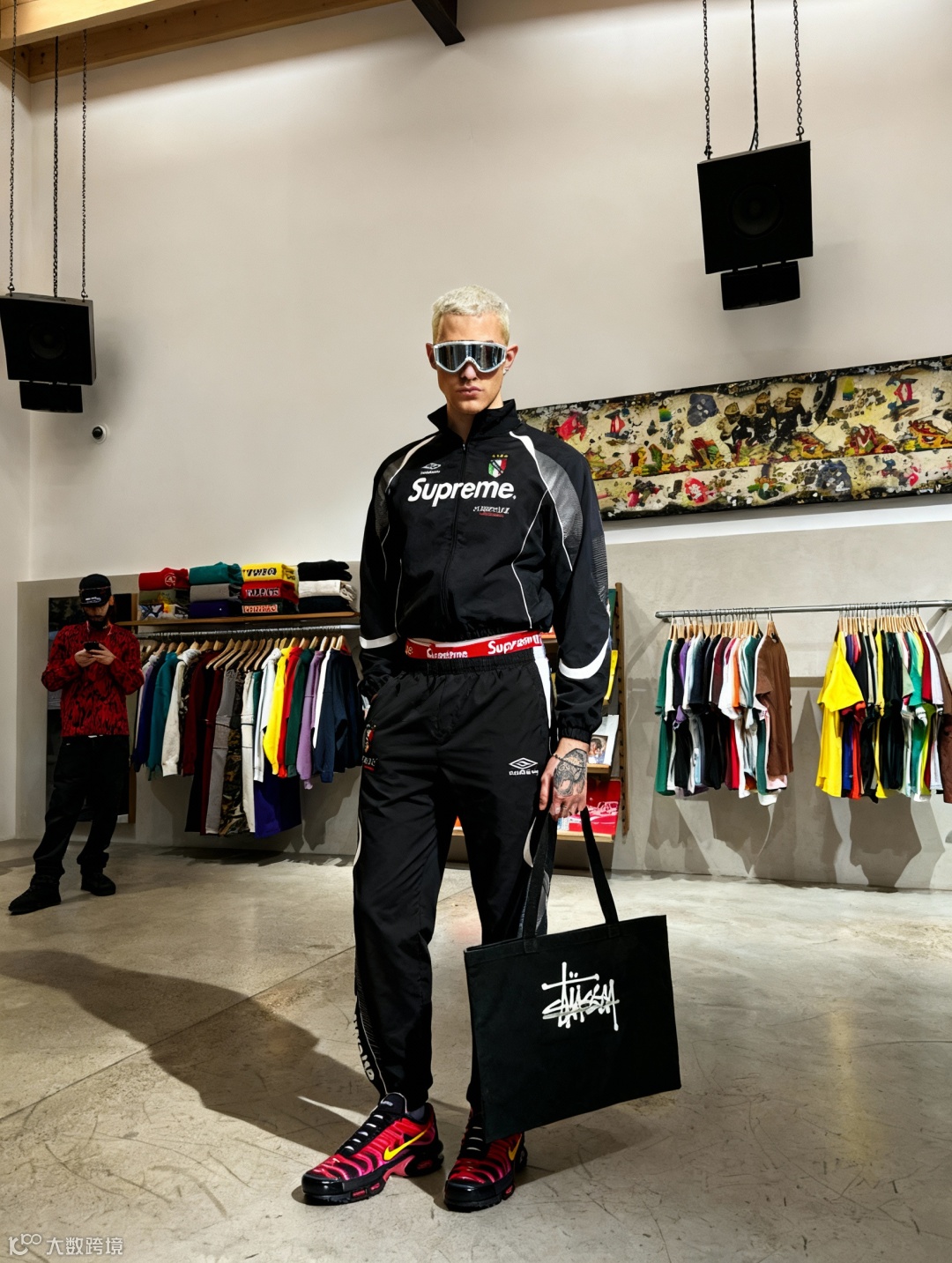 将人物、穿搭与环境三图融合,生成高时尚感街拍照片。