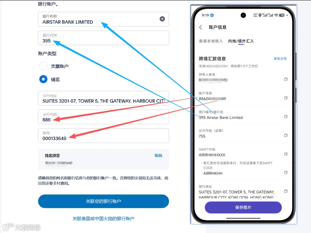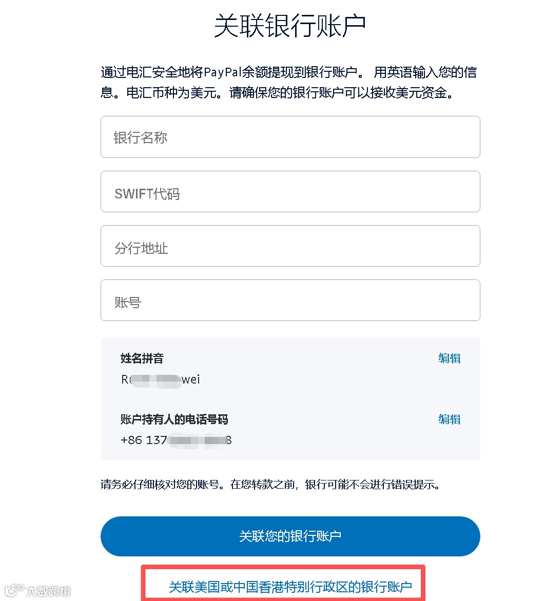 点击添加后选择底下的关联美国或香港的银行账户