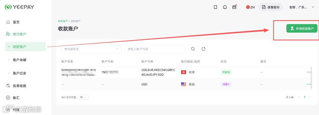 没有香港虚拟银行账户的朋友,开通了Yeepay后直接在收款账户那里直接申请,香港虚拟账户是直接秒开的哈!美国的话大概两天时间~