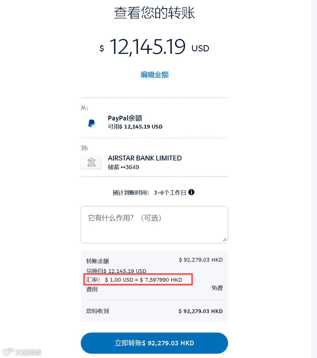 你看,汇率足足少了0.3几,这个钱太多了~