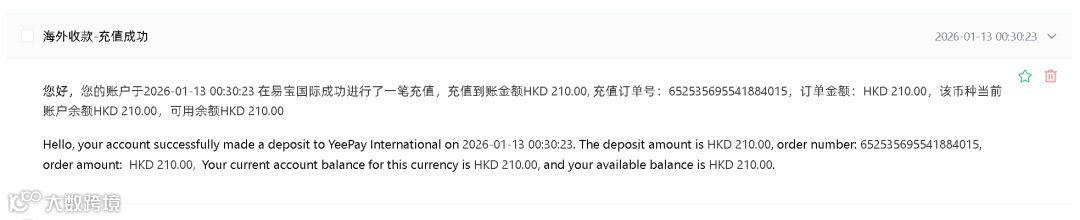 提现的话如果直接把PayPal的美金提到香港账户会变成港币,这个汇损实在太大了,所以我就测试了两百左右看看提现速度,底下我会介绍待会用到的Yeepay易宝支付来实现提现。