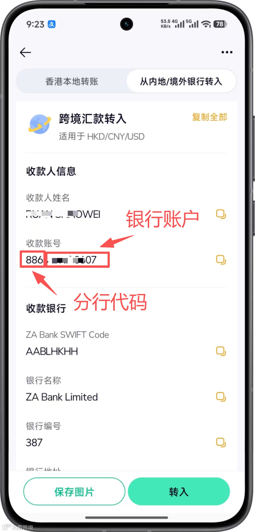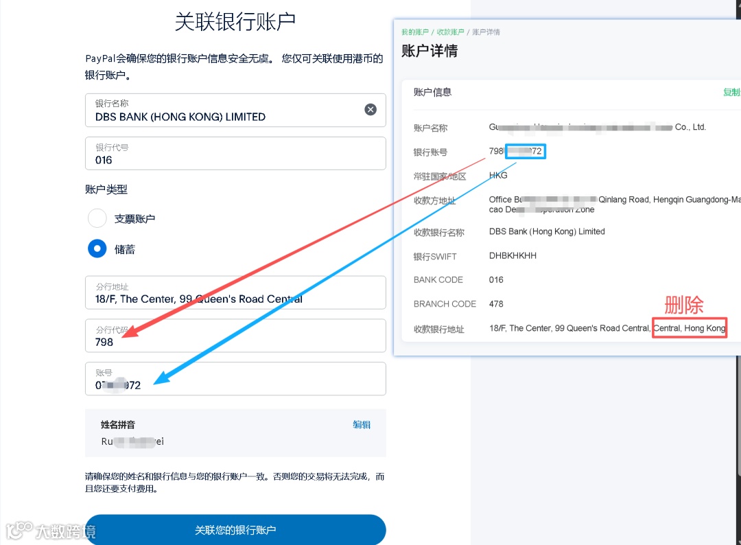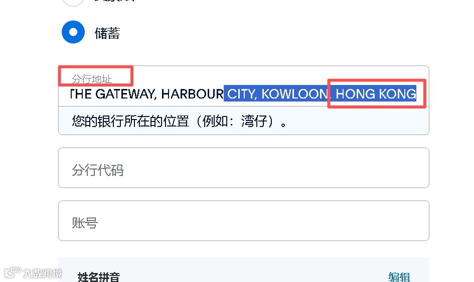 这里是细节!如果分行地址不把“,HONGKONG”删除,会报错的!