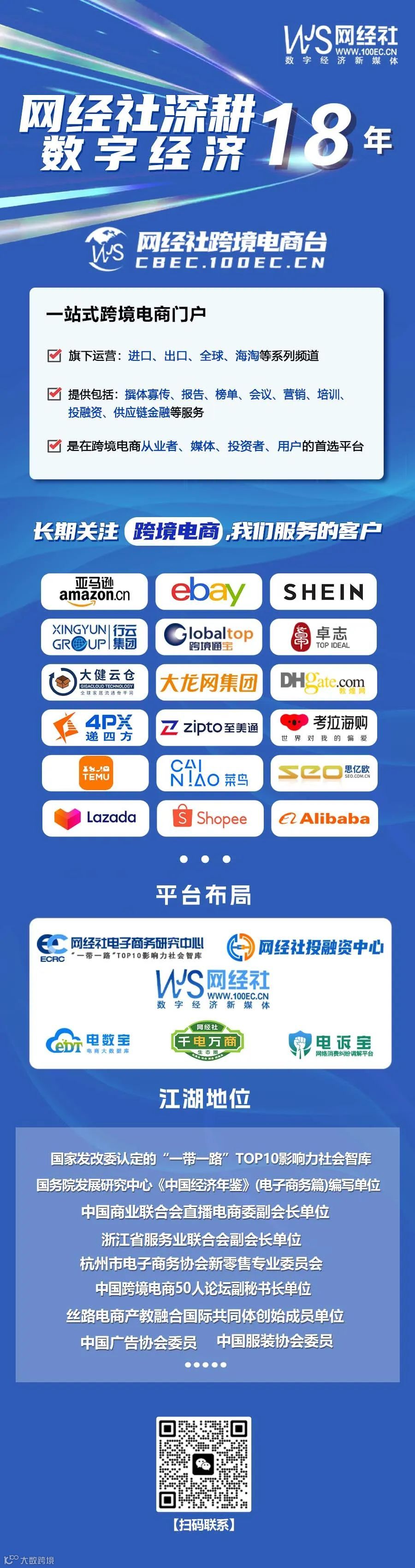 网经社深耕数字经济行业18年,长期关注跨境电商,旗下跨境电商台(CBEC.100EC.CN)报道、研究的客户:1)出口跨境电商:阿里巴巴国际站、环球资源、中国制造网、敦煌网、大龙网、拓拉思、领工云商、大健云仓、宝信环球、全球贸易通、亚马逊全球开店、eBay、Temu、TikTok Shop、全球速卖通、Shopee、Lazada、出口时代、联络互动、安克创新、华凯易佰、patpat、致欧科技、赛维时代、星商、吉宏股份、子不语、兰亭集势、三态股份、遨森电商、星徽股份、绿联科技、傲基科技、棒谷科技、浩方集团。2)进口跨境电商:行云集团、海弘集团、集采、候鸟、麦帮科技、福猫供应链、天猫国际、京东国际、洋葱集团、55海淘、亚马逊海外购、海拍客、KK集团、你好世界。3)跨境电商服务商:卓志集团、珊瑚跨境、世贸通、泛鼎国际、价之链、易芽、来赞宝、海比电商、纵腾集团、西邮物流、燕文物流、递四方、菜鸟国际、至美通、泛远国际、乐舱物流、华贸物流、安骏物流、飞盒跨境、海管家、驿玛科技、Paypal、PingPong、连连国际、空中云汇、派安盈、丰泊国际、Skyee、易宝支付、寻汇SUNRATE、豆沙包、智汇鹅、蚂蚁国际、义支付、拉卡拉、中盈跨境、领星、店匠、易仓科技、积加、店小秘、欧税通、马帮ERP、擎天全税通、易达云、易点天下、力盟科技、飞书深诺、思亿欧、卧兔网络、红毛猩猩、外贸公社等。