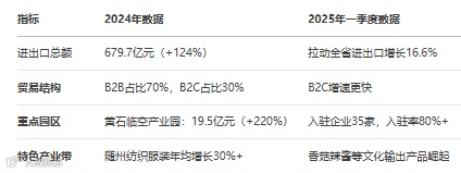 2025年4月,中国(鄂州)跨境电商综合试验区获批并启用,叠加花湖机场物流优势,推出"十二条政策",强化通关效率(如"7×24小时通关")和海外仓补贴。鄂州综试区的落地,标志着湖北跨境电商从"内陆节点"向"开放门户"跃升,为湖北建设内陆开放示范区贡献"鄂州方案"。
