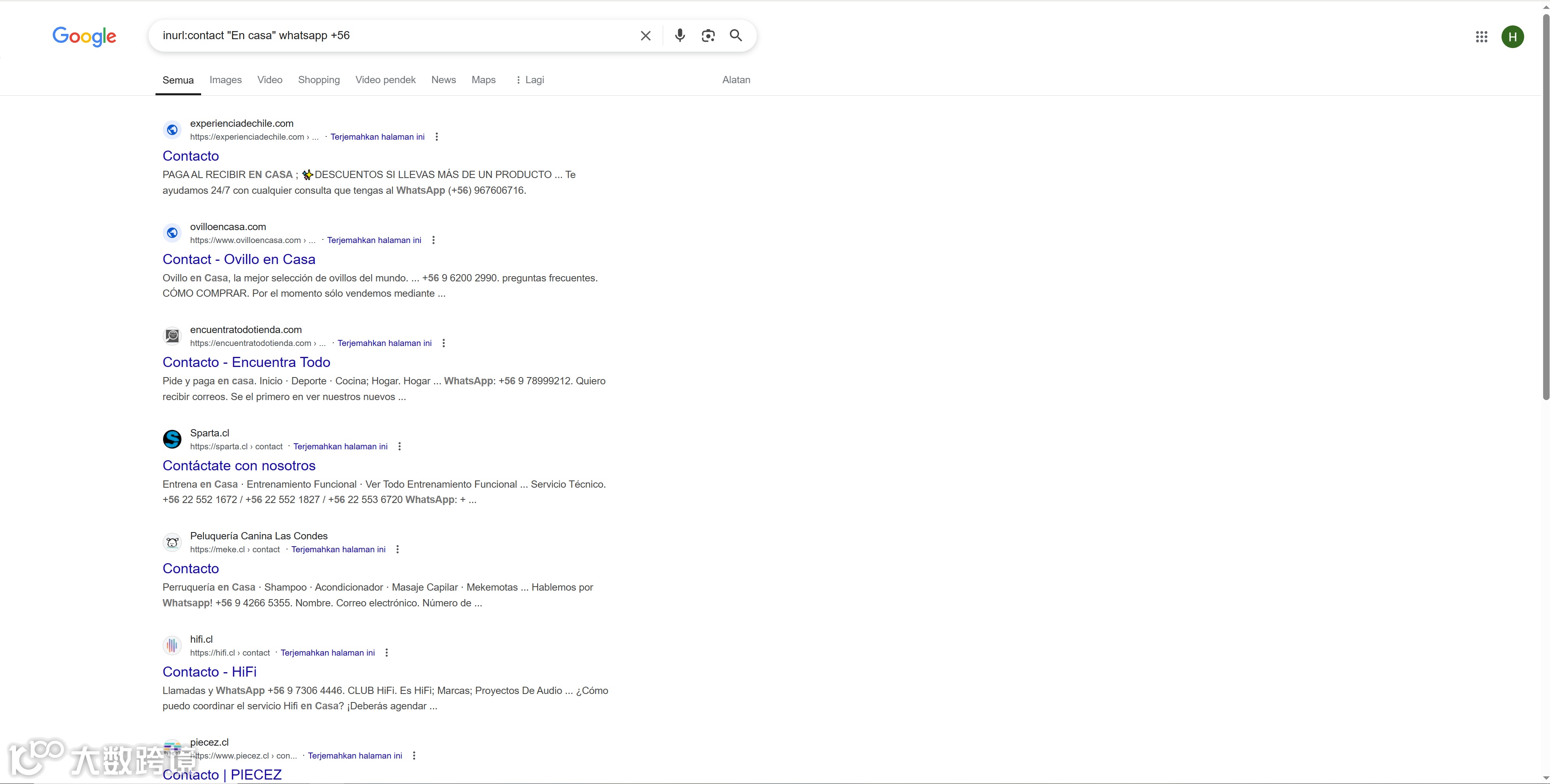 通过Google高级搜索语法,你可以精准定位到网页中包含WhatsApp联系方式的信息。下面以搜索智利市场中家居行业为例。