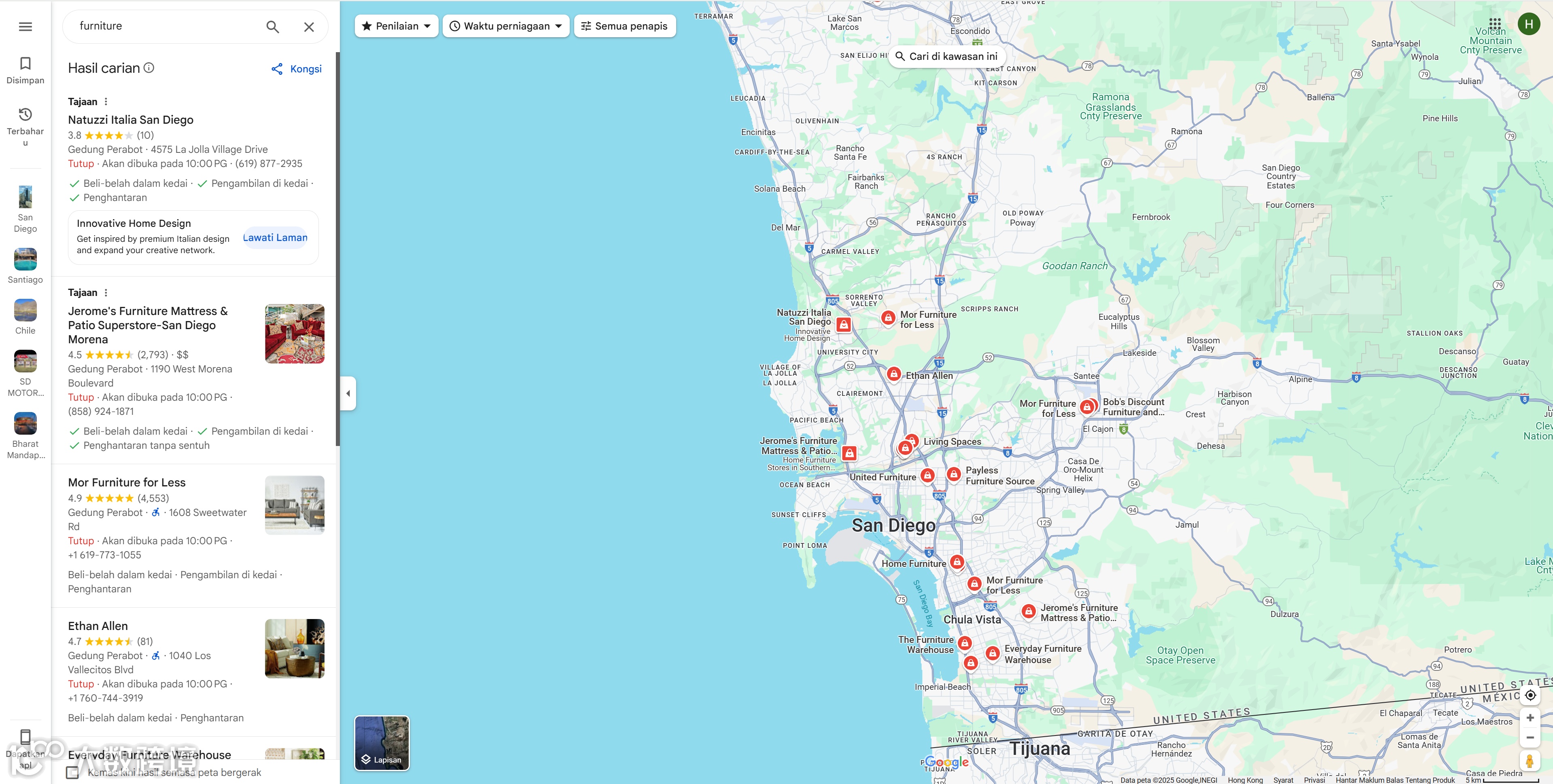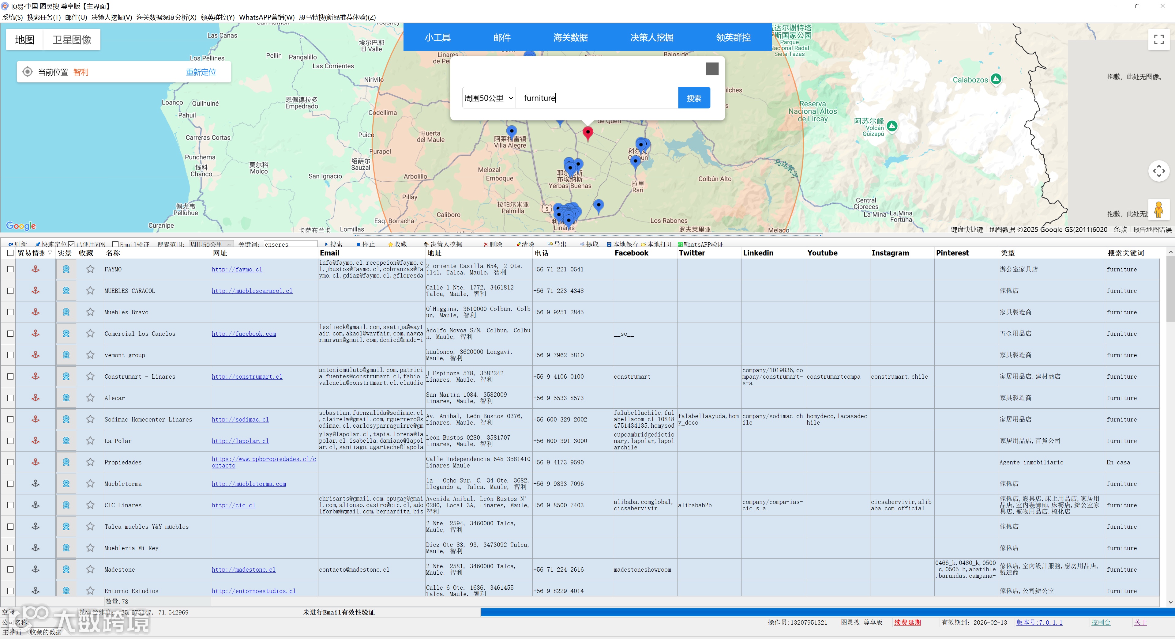 - 输入行业关键词:假设你从事家具进出口,输入关键词“furniture”,即可筛选出该城市内的公司和店铺。这里使用的关键词不要求西班牙语,英语也是可以的。