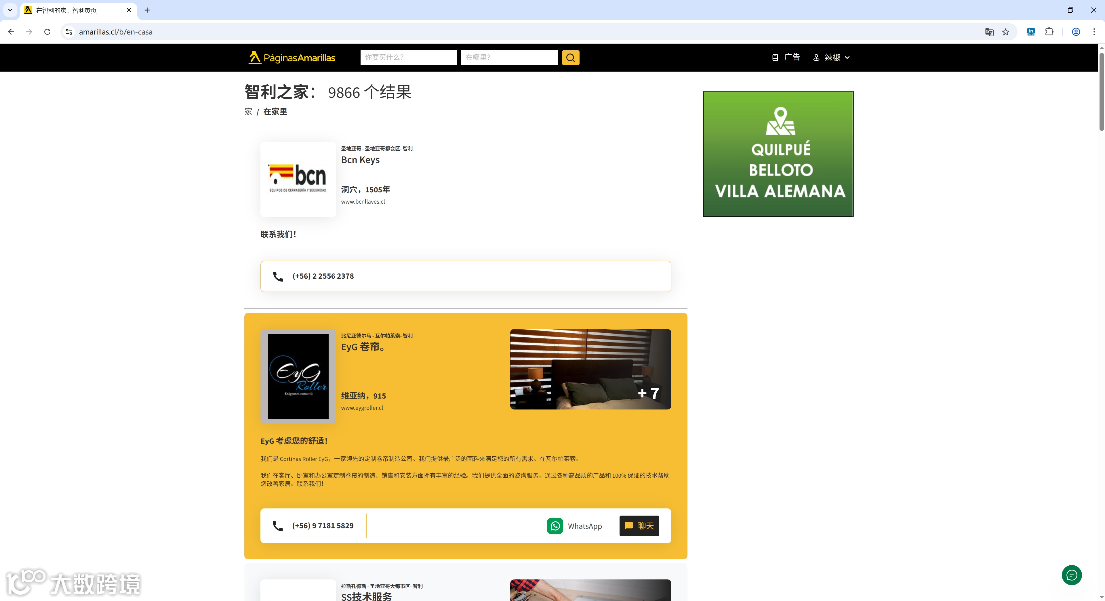 各国的黄页网站都提供了详细的黄页网站,下面以智利为例。