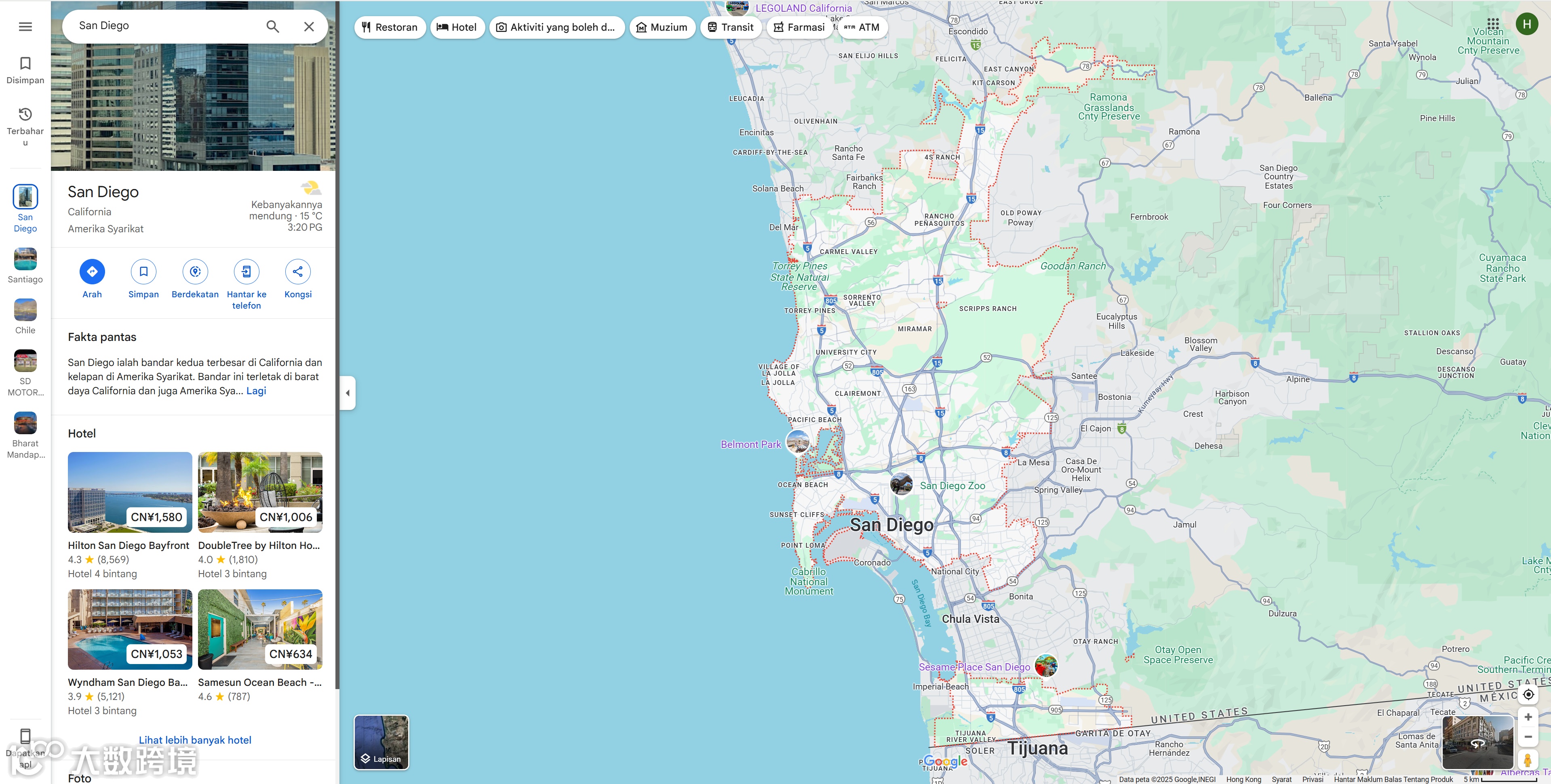 - 定位目标城市:在 Google 地图中搜索目标国家和城市,如智利的首都聖地牙哥。