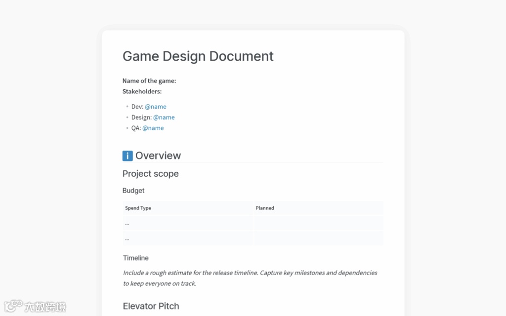 使用 LLM搭配免费的在线GDD模板。