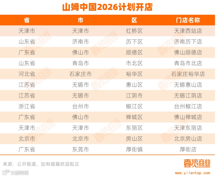 如此大的基数仍能实现高增幅,与新店创纪录扩张密不可分。2025年,山姆中国新开10家店,总店数达63家;据壹览商业不完全统计,2026年还将至少新开12家店。