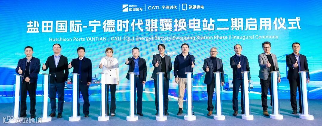 1月8日,在各级政府及领导单位的支持和指导下,盐田国际集装箱码头(下称“盐田国际”)与宁德时代骐骥新能源科技有限公司(下称“宁德时代骐骥”)共同举办“盐田国际-宁德时代骐骥换电站二期启用仪式”。