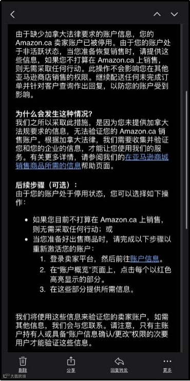 近日,有多位亚马逊卖家表示,自己在巴西和加拿大站点的账号被平台突然停用,且仍有同行在陆续收到类似邮件通知。