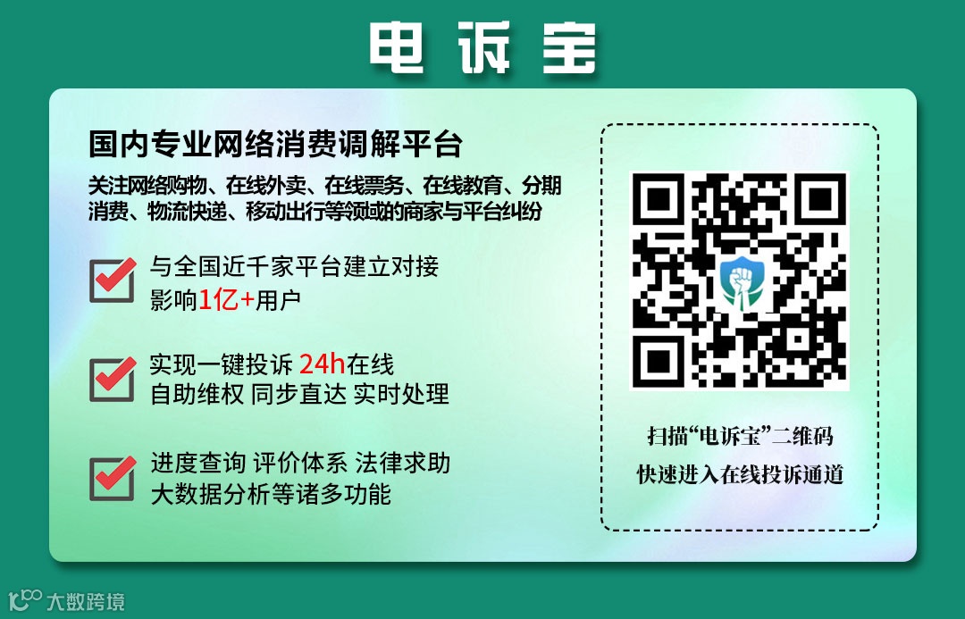 国内知名网络消费纠纷调解平台“电诉宝”(315.100EC.CN)运行10余年来,与全国近千家网络消费平台建立对接,影响1亿+网络消费用户,新系统实现一键投诉、24h在线、自助维权、同步直达、实时处理、进度查询、评价体系、法律求助、大数据分析等诸多功能。目前,平台“绿色通道”服务向广大网络消费平台开放,平台可自主申请入驻,实时受理、反馈和查询用户满意度评价。为了更好地营造公开、透明、健康的网络消费投诉环境,“电诉宝”公开版已正式上线,新增用户投诉实时受理动态、月度平台投诉量TOP10、热点投诉地区、投诉榜(依据投诉量排行)等模块,让投诉过程透明化,一手掌握信息动态。
