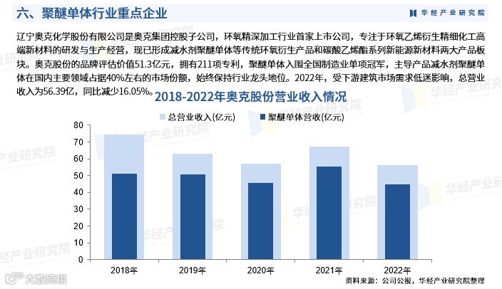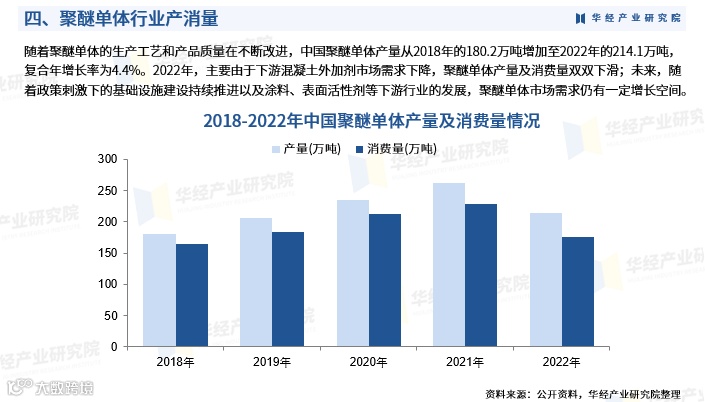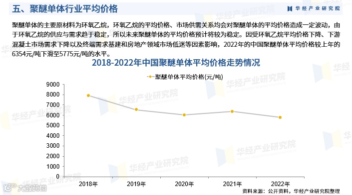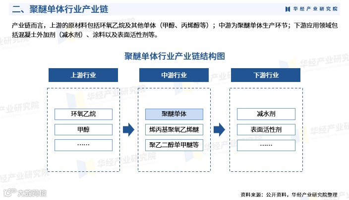 聚醚单体是一种由环氧乙烷与其他单体聚合而成的高分子材料,因其含有亲水基团,广泛应用于建筑、涂料及表面活性剂等领域,尤其在聚羧酸减水剂中发挥着关键作用。该类减水剂具备高减水率、良好保坍性和增强性能,已成为混凝土外加剂的主流产品。 从产业链结构看,聚醚单体上游主要依赖环氧乙烷、甲醇、丙烯醇等原材料;中游为生产环节;下游则集中于混凝土外加剂、涂料和表面活性剂等行业。数据显示,2022年聚羧酸减水剂占混凝土减水剂总产量的84.8%,普通减水剂占比不足1%,显示出高性能产品对传统产品的替代趋势持续加速。 近年来,中国聚醚单体产量保持稳定增长。2018年至2022年,产量从180.2万吨增至214.1万吨,年均复合增长率达4.4%。尽管2022年受房地产及基建市场低迷影响,下游需求减弱导致产量与消费量短期下滑,但随着国家基础设施建设政策持续推进,叠加涂料、日化等新兴领域的发展,未来市场需求仍具增长潜力。 价格方面,聚醚单体成本主要受环氧乙烷价格波动影响。2022年,因环氧乙烷价格下行及终端市场需求疲软,聚醚单体均价由6354元/吨下降至5775元/吨。目前环氧乙烷供需趋于稳定,预计未来聚醚单体价格将维持相对平稳态势。 龙头企业辽宁奥克化学股份有限公司在国内聚醚单体市场占据约40%份额,主导产品稳居行业前列,并入选全国制造业单项冠军。公司拥有211项专利,品牌价值达51.3亿元。2022年受建筑市场低迷影响,其营业收入同比下降16.05%,聚醚单体销量亦有所下滑。 当前国内主要聚醚单体类型包括聚乙二醇单甲醚(MPEG)、烯丙基聚氧乙烯醚(APEG)和甲基烯基聚氧乙烯醚(TPEG)。随着生产工艺不断优化,产品质量提升,行业正朝着高端化、绿色化方向发展。 《2025-2031年中国聚醚单体行业市场调查研究及发展趋势预测报告》基于多年跟踪研究,结合定量与定性分析方法,系统梳理行业发展环境、市场现状、竞争格局及重点企业运营情况,科学预测未来产能、消费量、价格走势及投资前景,为企业、科研机构和投资方提供权威决策参考。
