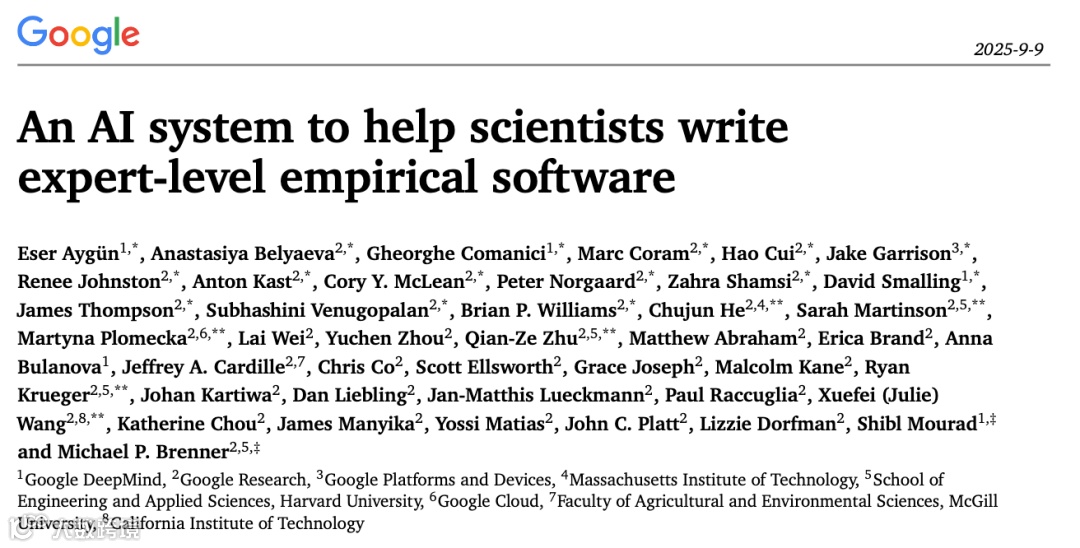 谷歌发布新型AI系统,可自动生成专家级科研软件
