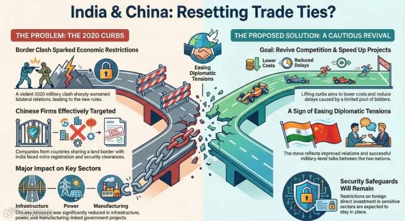 《印度快报》1月11日报道,印政府正考虑“分阶段”向中国开放经济,逐步放宽限制措施。在全球贸易格局快速变化以及美高关税威胁的背景下,印政府内部正重新评估对华经贸政策,讨论在部分领域、尤其是投资领域,适度放松既有限制。2020年4月,印政府调整外国直接投资(FDI)政策,要求中国等与印度“接壤国家”的投资者在投资印企前,必须事先获得印政府批准。但近期印国内政策机构开始反思该政策带来的经济后果。印国家转型委员会(NITI Aayog)已建议取消中国投资限制,印政府的《2023-2024年度经济调查报告》(the Economic Survey 2023-24)亦指出,吸引中企投资有助于提升印出口竞争力。与此同时,在中印关系有所缓和的背景下,印已在若干领域与中方达成一致或放开限制,包括恢复神山圣湖朝圣、恢复直航、恢复发放旅游签证、简化对华技术人员“电子生产投资商务签证”(e-B-4)签证申请流程等。知情官员表示,“政府计划放宽对华准入限制,但这需要时间,也需要对等措施。此前,我们(印度)恢复了航班,发放了签证,放宽了入境限制,以便让技术人员参与停滞的项目等。放宽限制需要循序渐进。”然而,印官员强调,相关政策调整将采取循序渐进的方式推进,不会一蹴而就,并指出中国在自印服务进口方面仍保留了一定限制。
