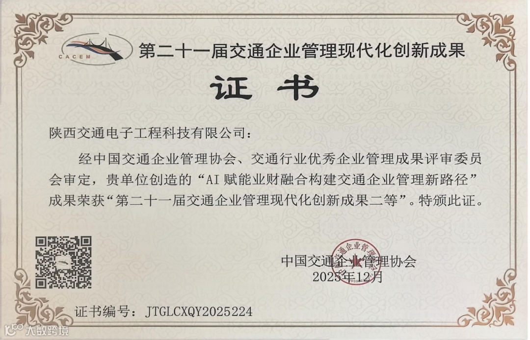 近日,交通电子公司的《AI赋能业财融合构建交通企业管理新路径》项目,在第二十一届交通企业管理现代化创新成果发布会上荣获二等奖。该项目深度总结了公司自主研发的“业财一体化系统”,其创新实践获得了评审委员会的高度认可。
