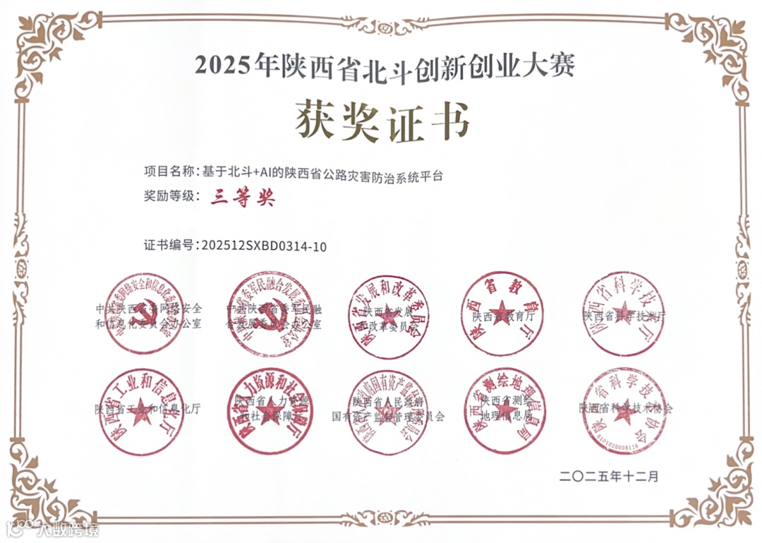 近日,在陕西省委网信办联合相关部门举办的“2025年陕西省北斗创新创业大赛”中,交通设计院参赛的“基于北斗+AI的陕西省公路灾害防治系统平台”项目,经初赛、决赛两轮比赛,在219项参赛项目中脱颖而出,喜获“2025年陕西省北斗创新创业大赛”三等奖。