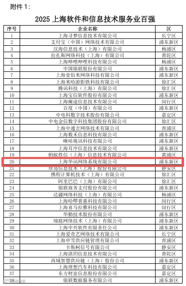 百强第20位,是荣誉,更是责任。未来,华讯网络将继续聚焦前沿领域,以一如既往的优质服务为上海软信产业高质量发展注入动能,为全球客户创造更高价值。