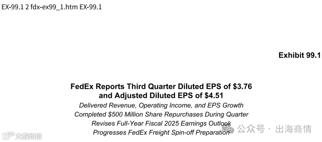 本季度联邦快递稀释每股收益为3.76美元,非GAAP调整后为4.51美元,超出市场预期。这一表现得益于“DRIVE转型计划”带来的成本优化收益,预计全年可节省22亿美元成本,其中本季度业务优化相关费用为1.79亿美元,同比增加57%。